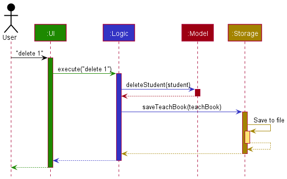 The Sequence Diagram below shows how the components interact with each other for the scenario where the user issues the command delete 1.