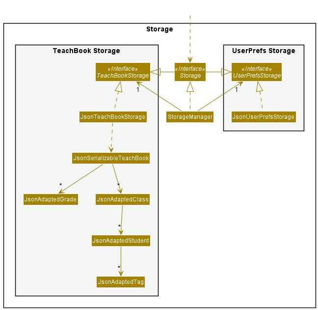 TeachBookStorageandUserPrefStorage, which means it can be treated as either one (if only the functionality of one is needed). - depends on some classes in the